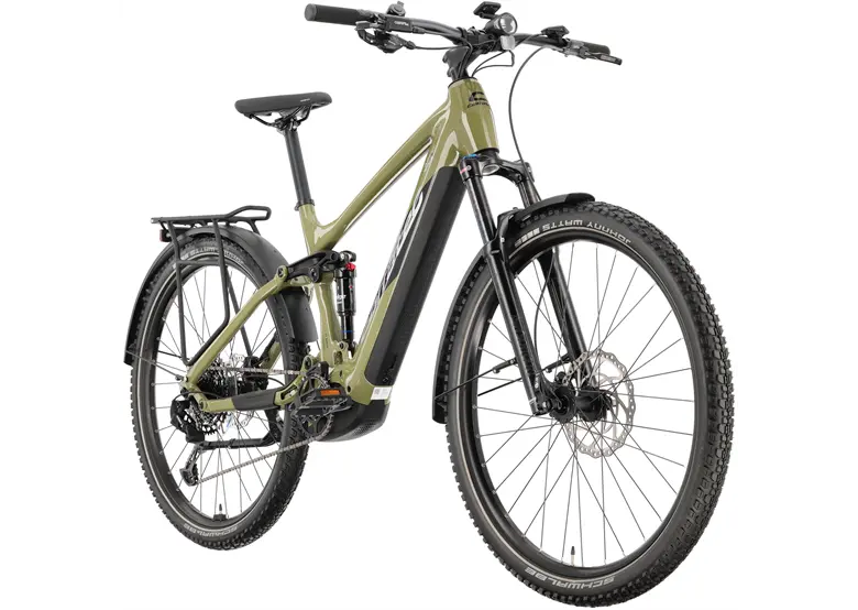 Koła ZZYZX Cross Attack 29″ oraz opony Schwalbe Johnny Watts zapewniają świetną trakcję, niskie opory toczenia na asfalcie i stabilność w terenie. Gumowa mieszanka Addix Performance zwiększa wytrzymałość na obciążenia rowerów elektrycznych.