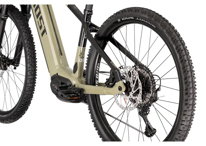 Koła i opony: 27,5″ Schurmann YAK Disc, opony Schwalbe Smart Sam K-Guard 60‑622, sztywne osie Boost (15×110 mm przód, 12×148 mm tył).